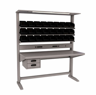Estrutura em Aço Carbono SAE 1010; Possui Ajuste Ergométrico na Mesa e no Suporte das gavetas; 02 unid. Gavetas Alt. 95,0mm em Aço Carbono; 02 conj. Corrediças Telescópica p/ gavetas; 02 unid. Puxador das Gavetas em Nylon; 24 unid. Caixas Bins para Armazenamento; 02 unid. Filtros de linha com 4 Tomadas e cabo 1m; 01 unid. Iluminação em LED; 01 unid. Tampo Mesa em Aço Inox; 04 unid. Pés Niveladores;