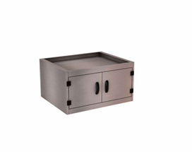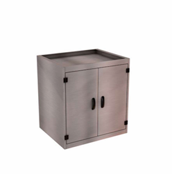 Estrutura em Aço Inox; 02 unid. Portas em Aço Inox; 01 unid. Prateleira em Aço Inox; 02 unid. Puxador Nylon; 04 unid. Pés Nivelador;