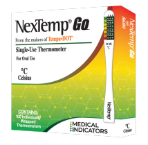 O NexTemp® GO é um termômetro descartável, rápido e preciso, que mede a temperatura em 10 segundos, sem baterias e com menor impacto ambiental.