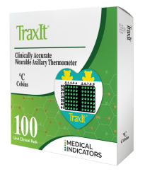 O TraxIt® é um termômetro descartável pediátrico, seguro e preciso, que monitora a temperatura por 48 horas sem baterias e com menor impacto ambiental.