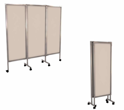 Estrutura em Aço Inox 03 unid. Divisória em Aço Inox e PVC com Dobradiça Articulada; 06 unid. Rodízios giratório 50mm (sendo 4 un c/ freio);