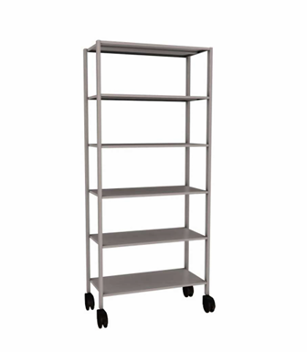 Estrutura em Aço Carbono SAE 1010; 06 unid. Prateleira fixa c/ Reforço em Aço Carbono; 04 unid. Rodízios Giratório 100mm (sendo 2 un c/ freio);