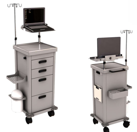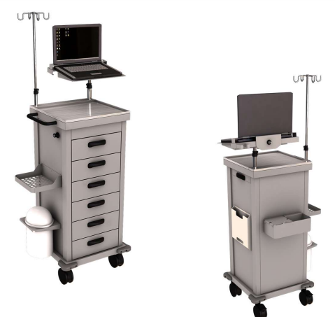 O modelo LE-20.21 oferece uma configuração de armazenamento diferente, com duas gavetas pequenas e duas gavetas grandes, ideal para quem precisa acomodar itens de volumes variados. Assim como o LE-20.20, ele vem equipado com a indispensável bandeja para notebook com trava antifurto, bandeja extraível em aço inox, suporte para soro e um conjunto completo de acessórios que otimizam o atendimento beira leito.