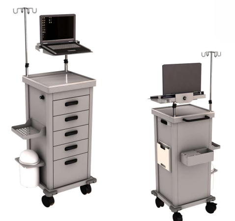 O LE-20.20 é um carro de atendimento completo, projetado para a máxima eficiência. Possui quatro gavetas pequenas e uma gaveta grande, com divisória na primeira para organização de medicamentos. Seu grande diferencial é a bandeja para notebook com sistema de trava antifurto, que permite o acesso seguro a prontuários eletrônicos. Conta ainda com uma bandeja extraível para manipulação, suporte para soro e todos os acessórios essenciais, fazendo dele uma verdadeira estação de trabalho móvel.
